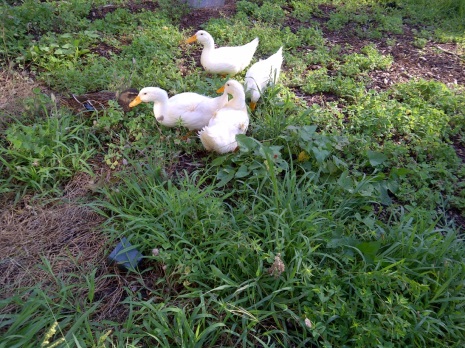 As an aside, I prefer ducks over chickens, in that ducks produce more eggs, are generally healthier than chickens, and they travel the garden eating bugs and slugs, without digging up your tender plants (like chickens do when scratching).